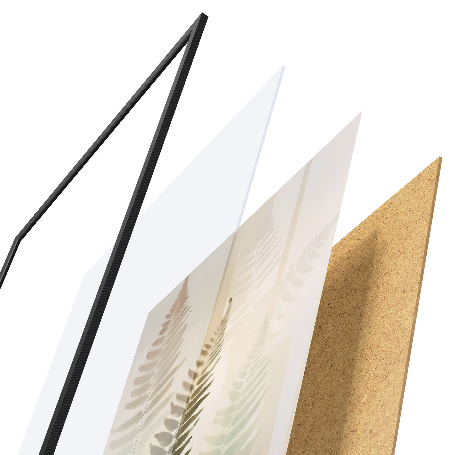 Plagát sa skladá z rámu, plexiskla, vytlačeného obrazu a podkladu z drevotriesky. Plagát možno okamžite zavesiť na stenu vďaka úchytom na zadnej strane.
