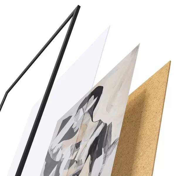 Plagát sa skladá z rámu, plexiskla, vytlačeného obrazu a podkladu z drevotriesky. Plagát možno okamžite zavesiť na stenu vďaka úchytom na zadnej strane.