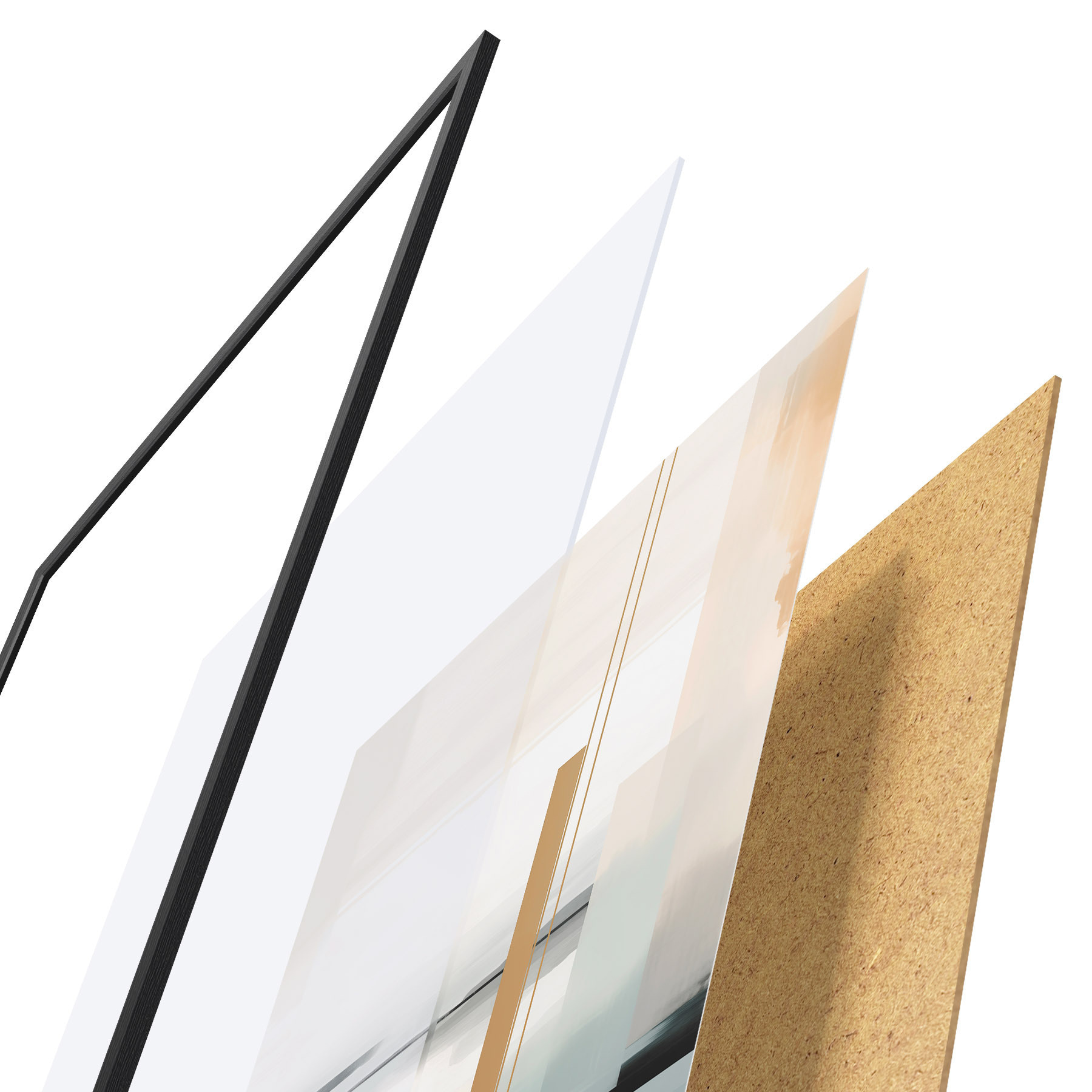 Plagát sa skladá z rámu, plexiskla, vytlačeného obrazu a podkladu z drevotriesky. Plagát možno okamžite zavesiť na stenu vďaka úchytom na zadnej strane.