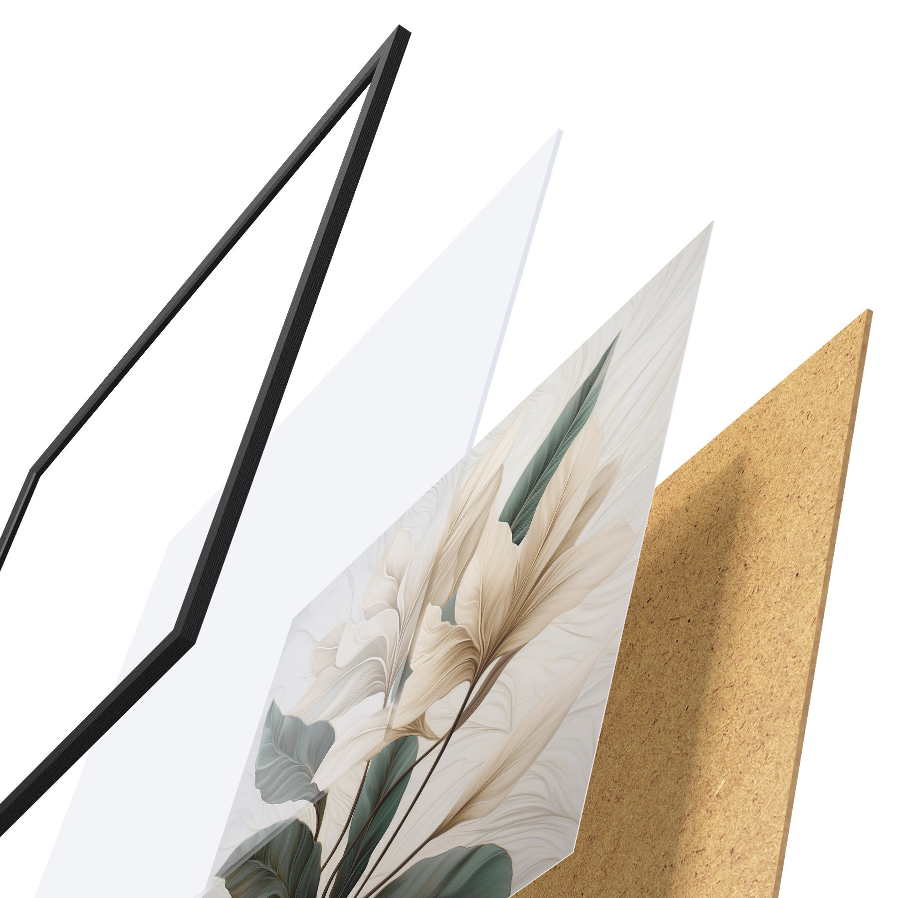 Plagát sa skladá z rámu, plexiskla, vytlačeného obrazu a podkladu z drevotriesky. Plagát možno okamžite zavesiť na stenu vďaka úchytom na zadnej strane.