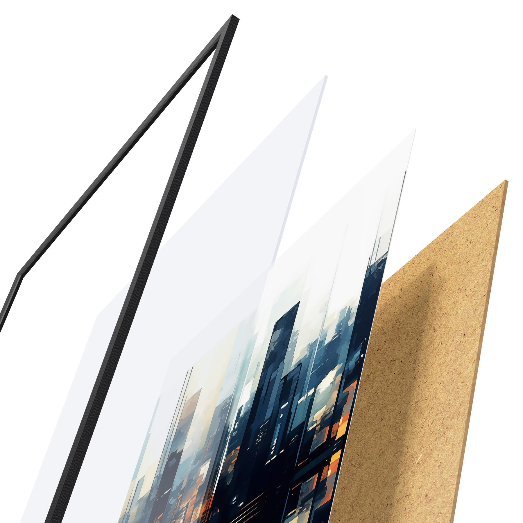 Plagát sa skladá z rámu, plexiskla, vytlačeného obrazu a podkladu z drevotriesky. Plagát možno okamžite zavesiť na stenu vďaka úchytom na zadnej strane.