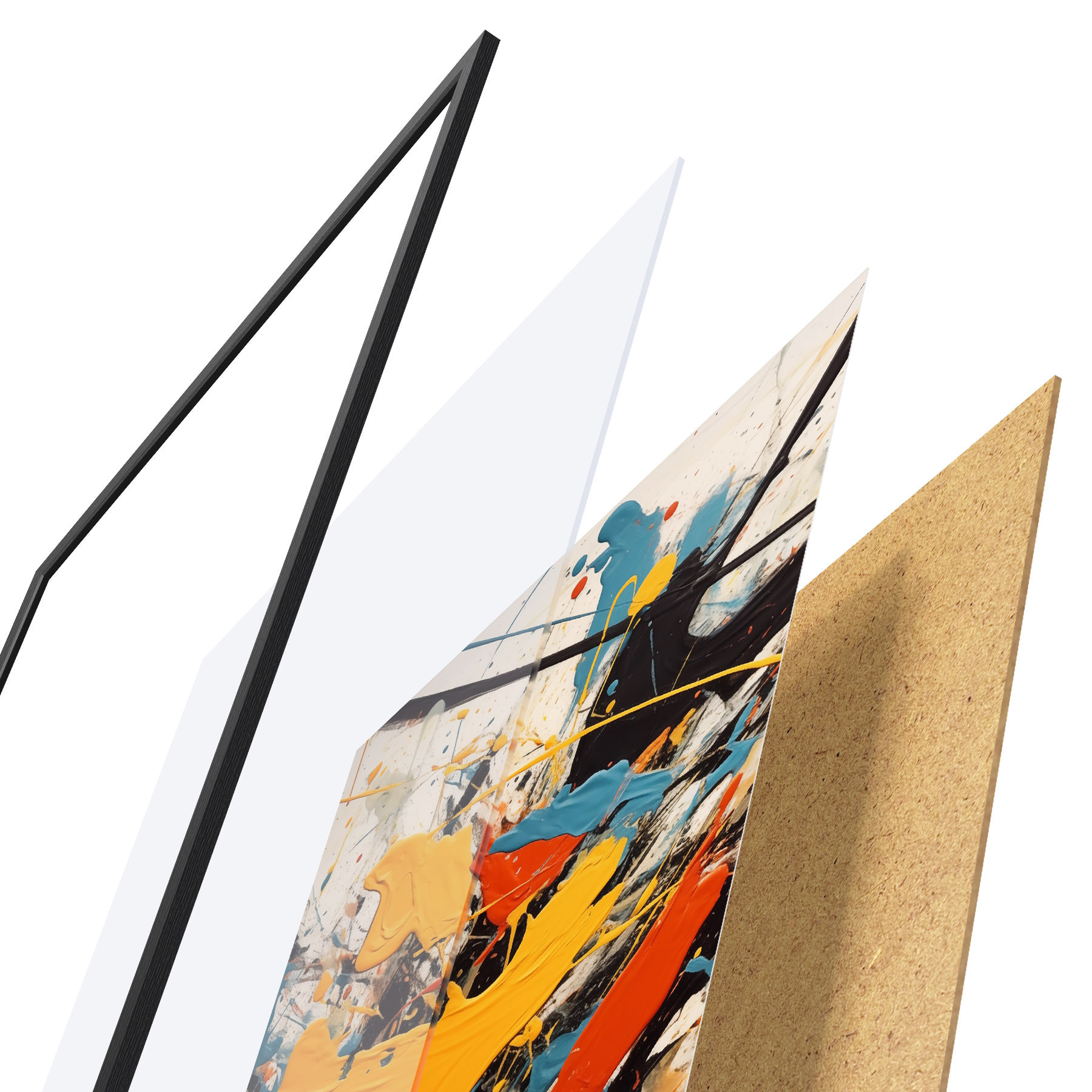 Plagát sa skladá z rámu, plexiskla, vytlačeného obrazu a podkladu z drevotriesky. Plagát možno okamžite zavesiť na stenu vďaka úchytom na zadnej strane.