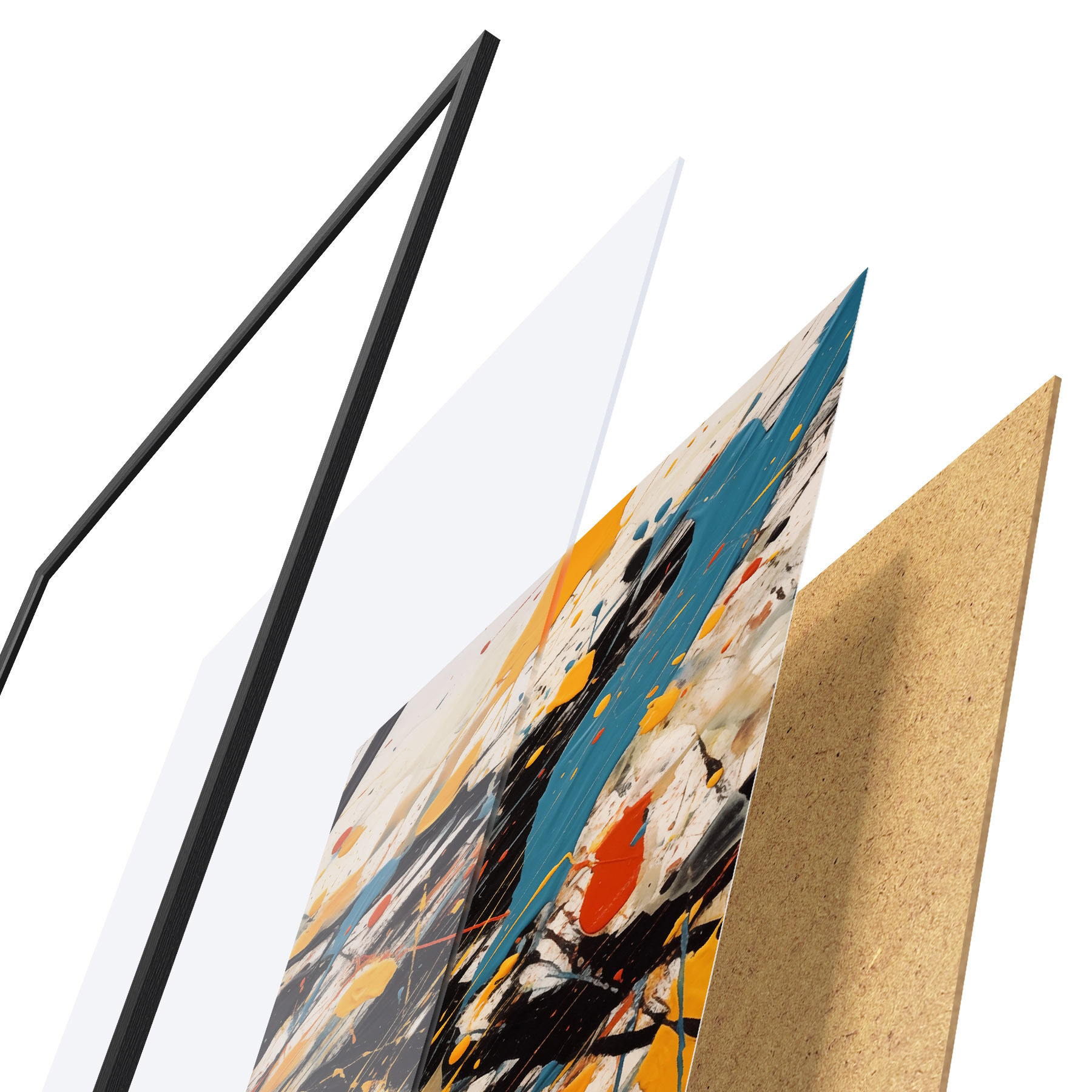 Plagát sa skladá z rámu, plexiskla, vytlačeného obrazu a podkladu z drevotriesky. Plagát možno okamžite zavesiť na stenu vďaka úchytom na zadnej strane.