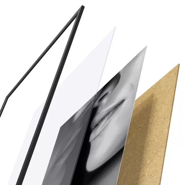 Plagát sa skladá z rámu, plexiskla, vytlačeného obrazu a podkladu z drevotriesky. Plagát možno okamžite zavesiť na stenu vďaka úchytom na zadnej strane.