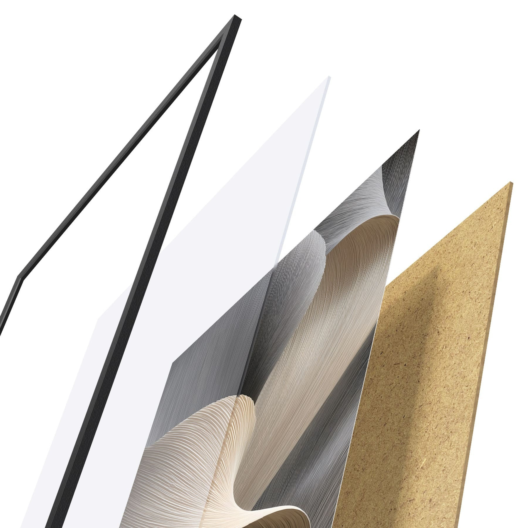 Plagát sa skladá z rámu, plexiskla, vytlačeného obrazu a podkladu z drevotriesky. Plagát možno okamžite zavesiť na stenu vďaka úchytom na zadnej strane.