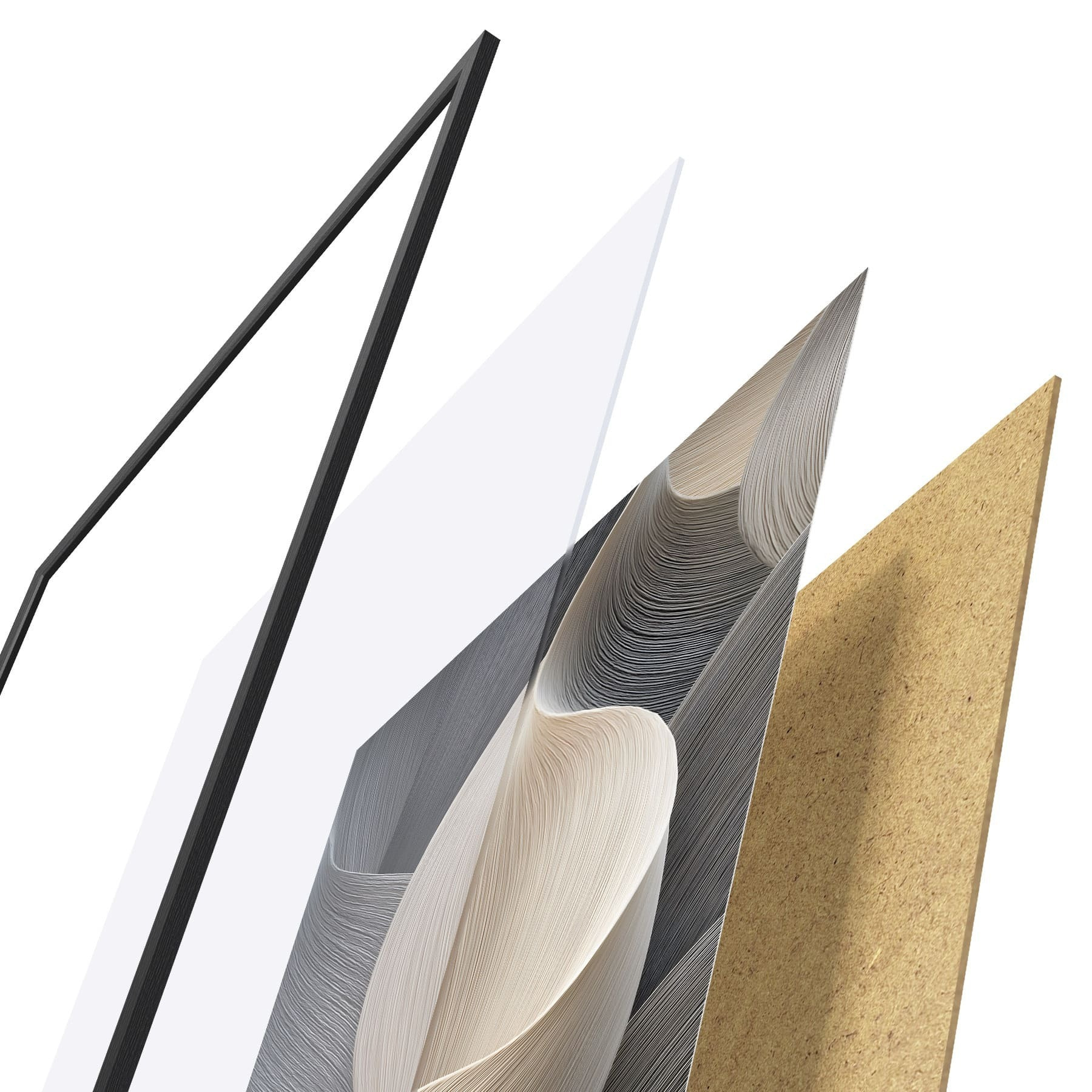 Plagát sa skladá z rámu, plexiskla, vytlačeného obrazu a podkladu z drevotriesky. Plagát možno okamžite zavesiť na stenu vďaka úchytom na zadnej strane.
