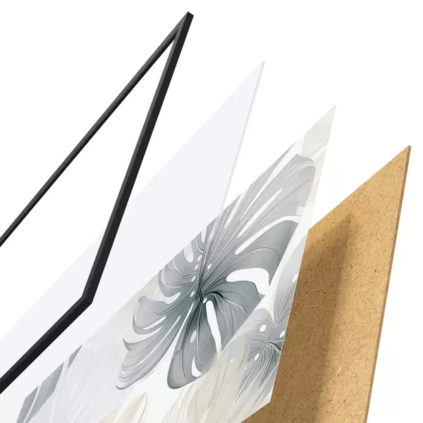 Plagát sa skladá z rámu, plexiskla, vytlačeného obrazu a podkladu z drevotriesky. Plagát možno okamžite zavesiť na stenu vďaka úchytom na zadnej strane.