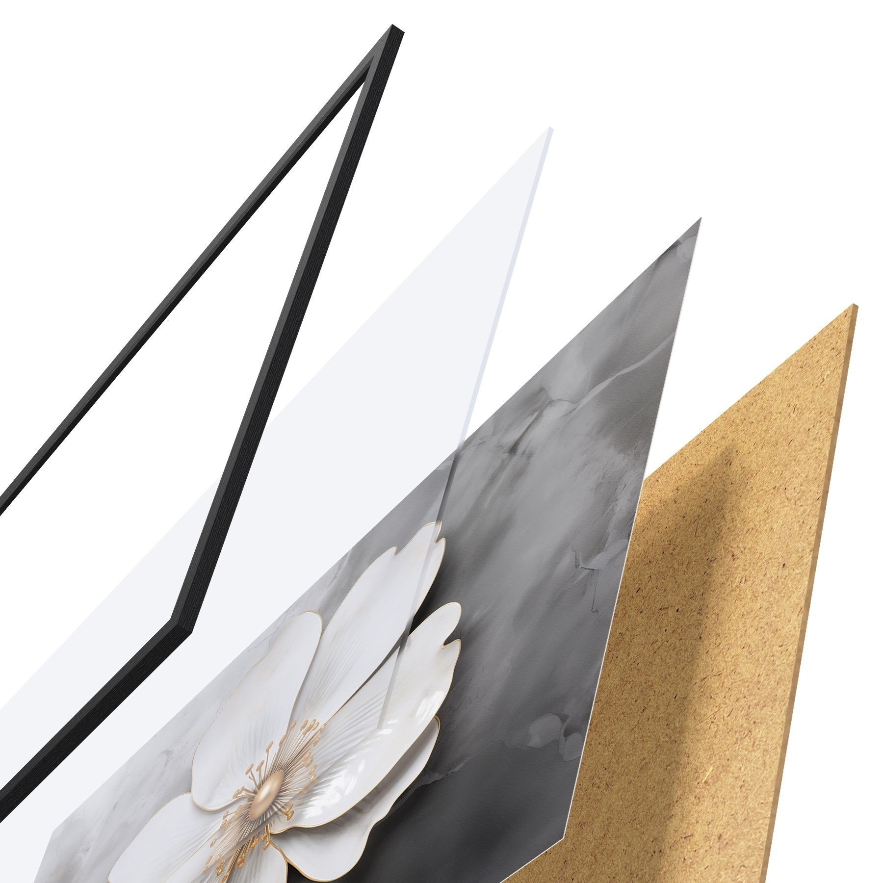 Plagát sa skladá z rámu, plexiskla, vytlačeného obrazu a podkladu z drevotriesky. Plagát možno okamžite zavesiť na stenu vďaka úchytom na zadnej strane.