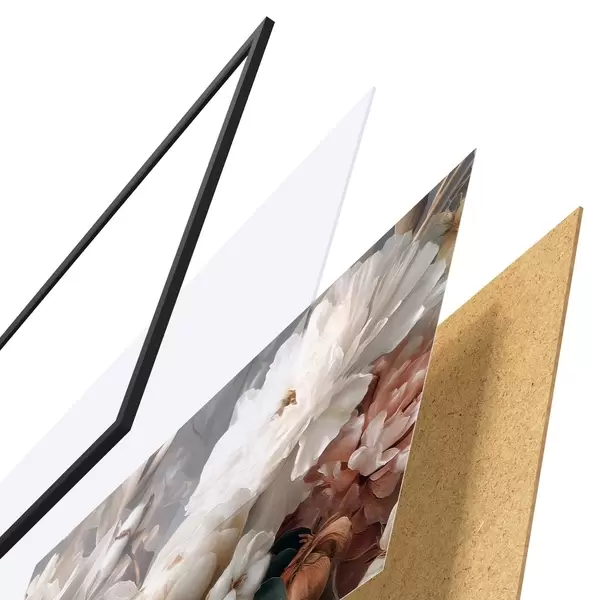 Plagát sa skladá z rámu, plexiskla, vytlačeného obrazu a podkladu z drevotriesky. Plagát možno okamžite zavesiť na stenu vďaka úchytom na zadnej strane.