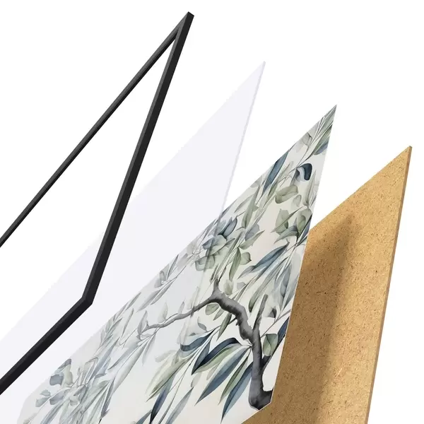 Plagát sa skladá z rámu, plexiskla, vytlačeného obrazu a podkladu z drevotriesky. Plagát možno okamžite zavesiť na stenu vďaka úchytom na zadnej strane.