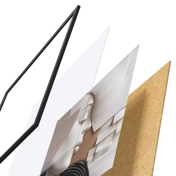 Plagát sa skladá z rámu, plexiskla, vytlačeného obrazu a podkladu z drevotriesky. Plagát možno okamžite zavesiť na stenu vďaka úchytom na zadnej strane.