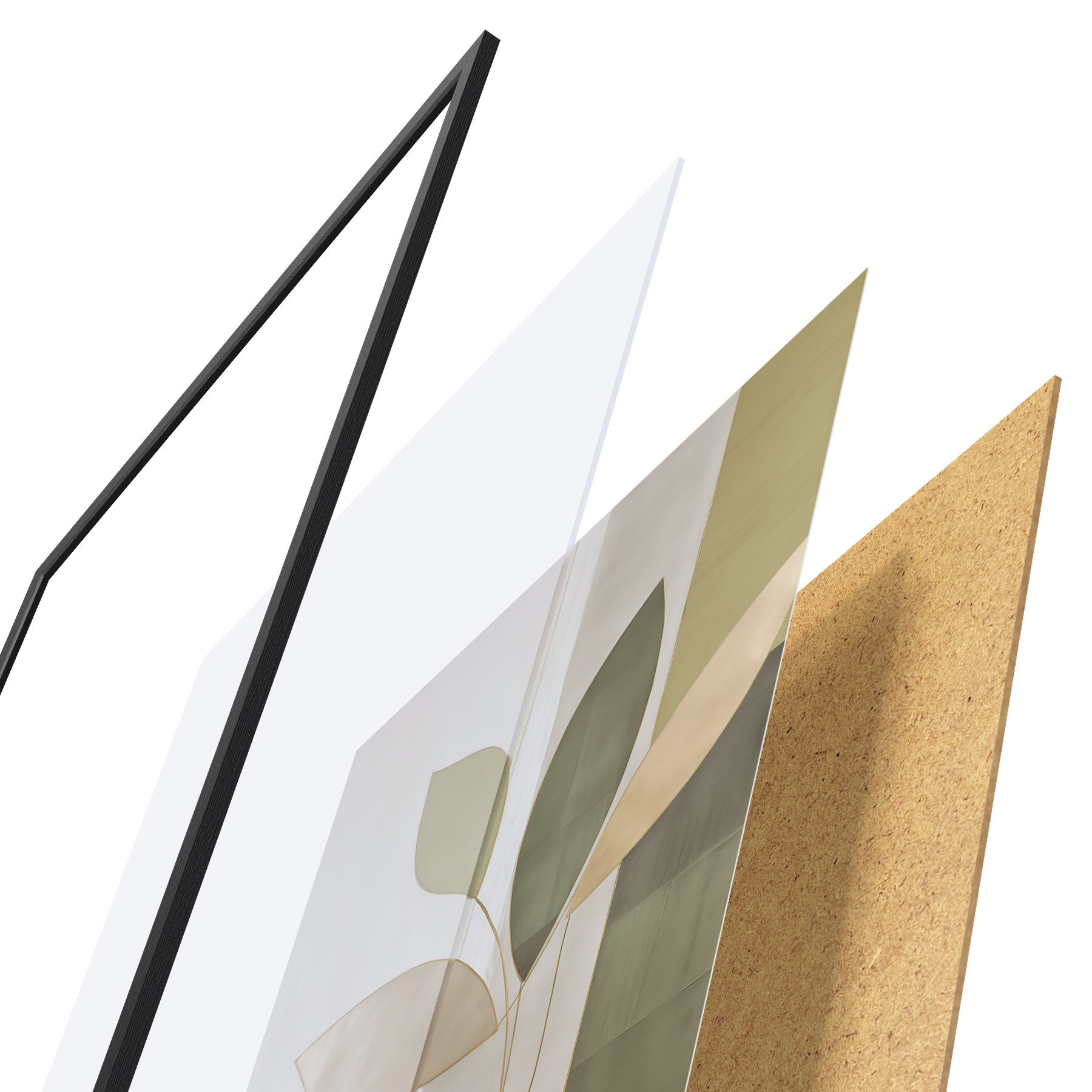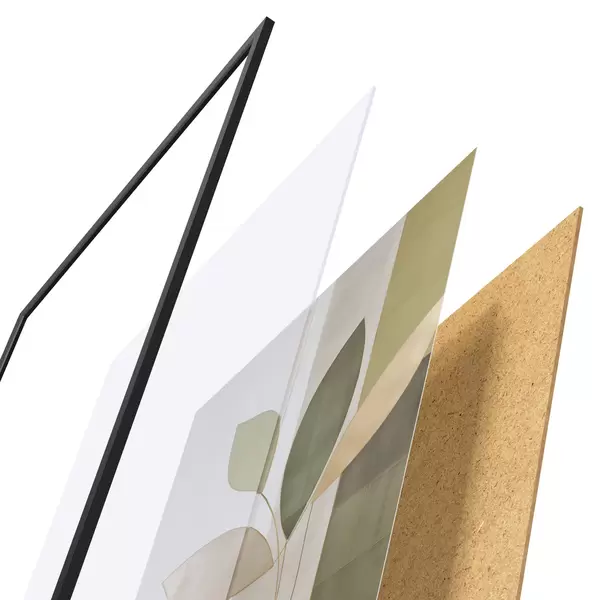 Plagát sa skladá z rámu, plexiskla, vytlačeného obrazu a podkladu z drevotriesky. Plagát možno okamžite zavesiť na stenu vďaka úchytom na zadnej strane.