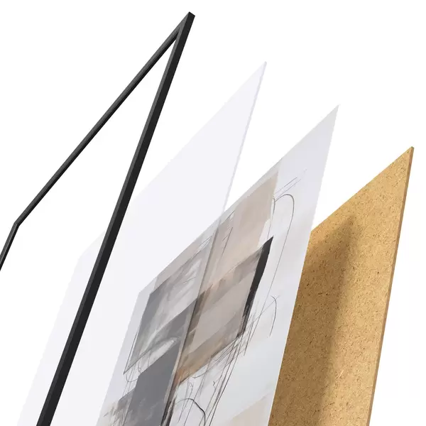 Plagát sa skladá z rámu, plexiskla, vytlačeného obrazu a podkladu z drevotriesky. Plagát možno okamžite zavesiť na stenu vďaka úchytom na zadnej strane.