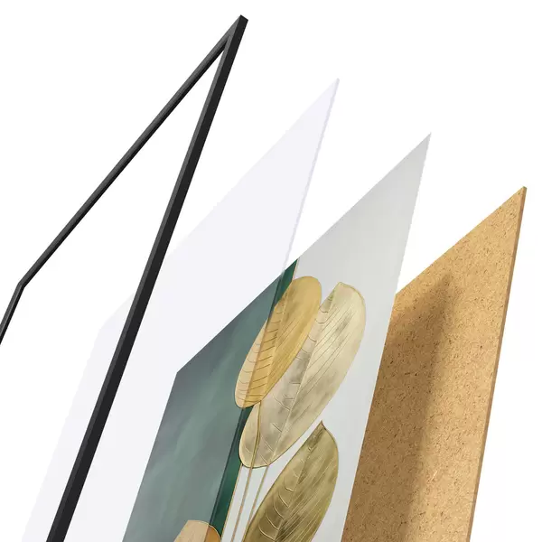 Plagát sa skladá z rámu, plexiskla, vytlačeného obrazu a podkladu z drevotriesky. Plagát možno okamžite zavesiť na stenu vďaka úchytom na zadnej strane.