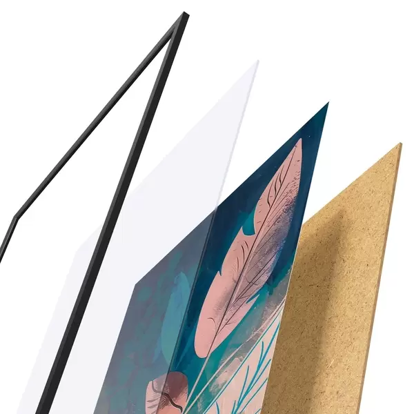 Plagát sa skladá z rámu, plexiskla, vytlačeného obrazu a podkladu z drevotriesky. Plagát možno okamžite zavesiť na stenu vďaka úchytom na zadnej strane.