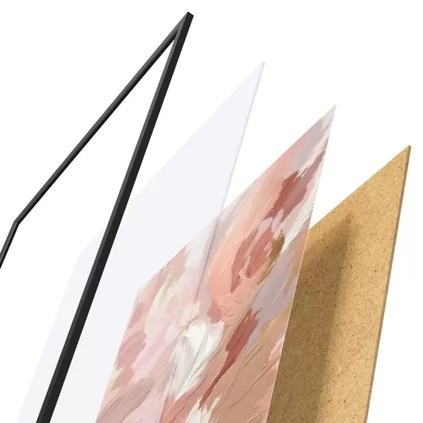 Plagát sa skladá z rámu, plexiskla, vytlačeného obrazu a podkladu z drevotriesky. Plagát možno okamžite zavesiť na stenu vďaka úchytom na zadnej strane.