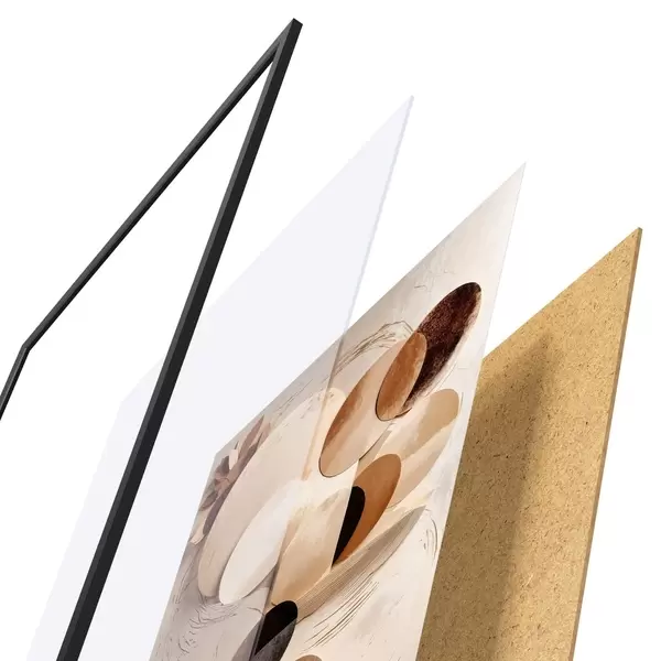 Plagát sa skladá z rámu, plexiskla, vytlačeného obrazu a podkladu z drevotriesky. Plagát možno okamžite zavesiť na stenu vďaka úchytom na zadnej strane.
