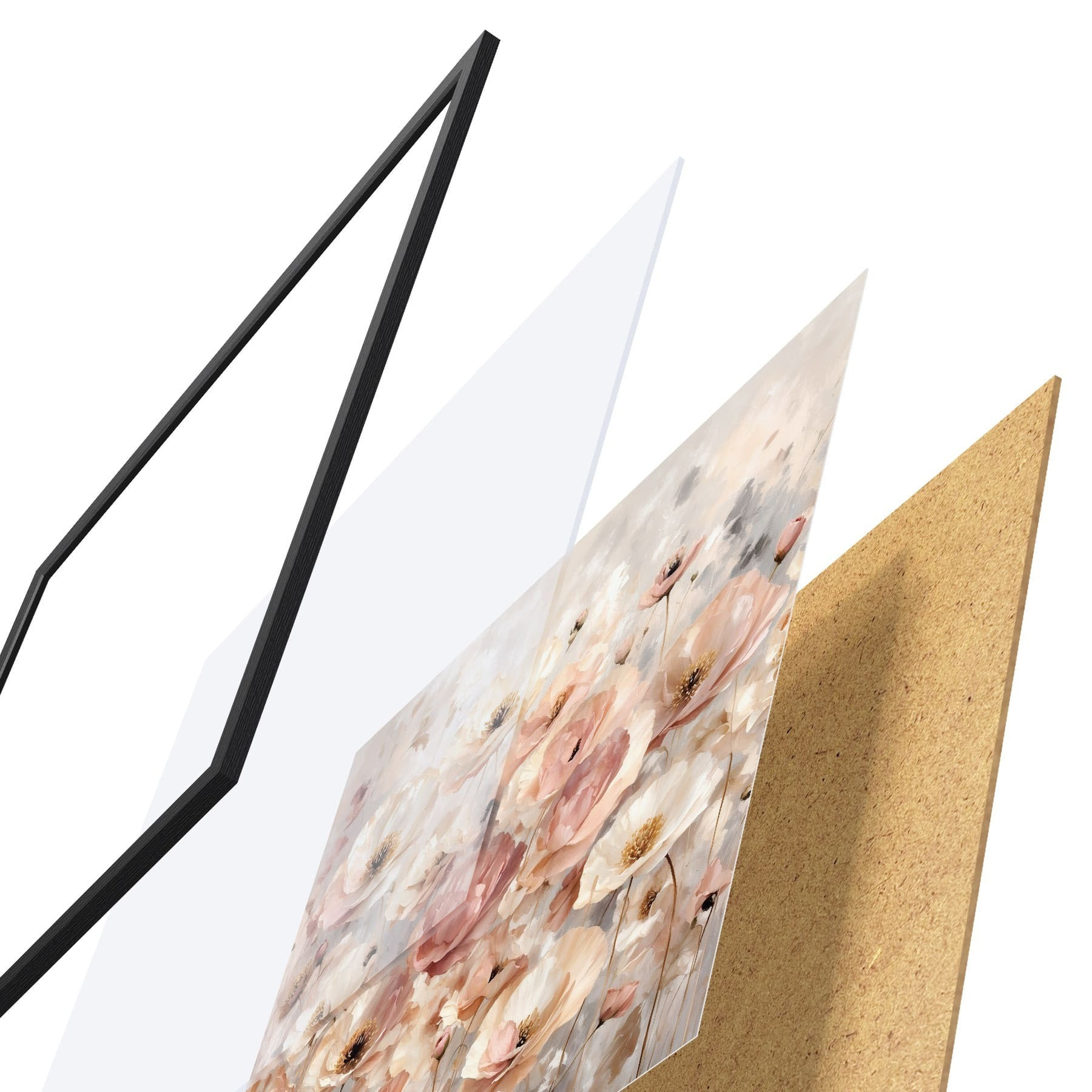 Plagát sa skladá z rámu, plexiskla, vytlačeného obrazu a podkladu z drevotriesky. Plagát možno okamžite zavesiť na stenu vďaka úchytom na zadnej strane.