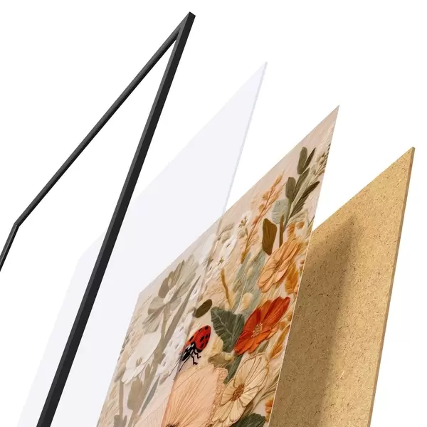Plagát sa skladá z rámu, plexiskla, vytlačeného obrazu a podkladu z drevotriesky. Plagát možno okamžite zavesiť na stenu vďaka úchytom na zadnej strane.