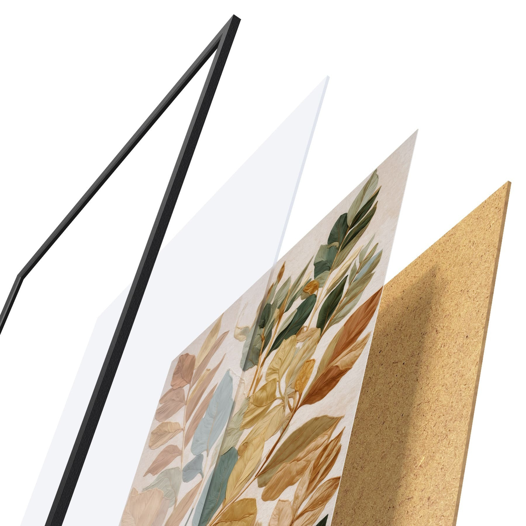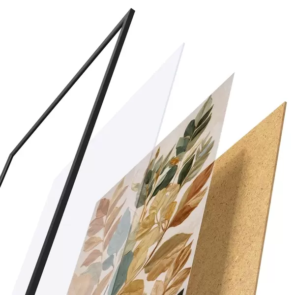 Plagát sa skladá z rámu, plexiskla, vytlačeného obrazu a podkladu z drevotriesky. Plagát možno okamžite zavesiť na stenu vďaka úchytom na zadnej strane.