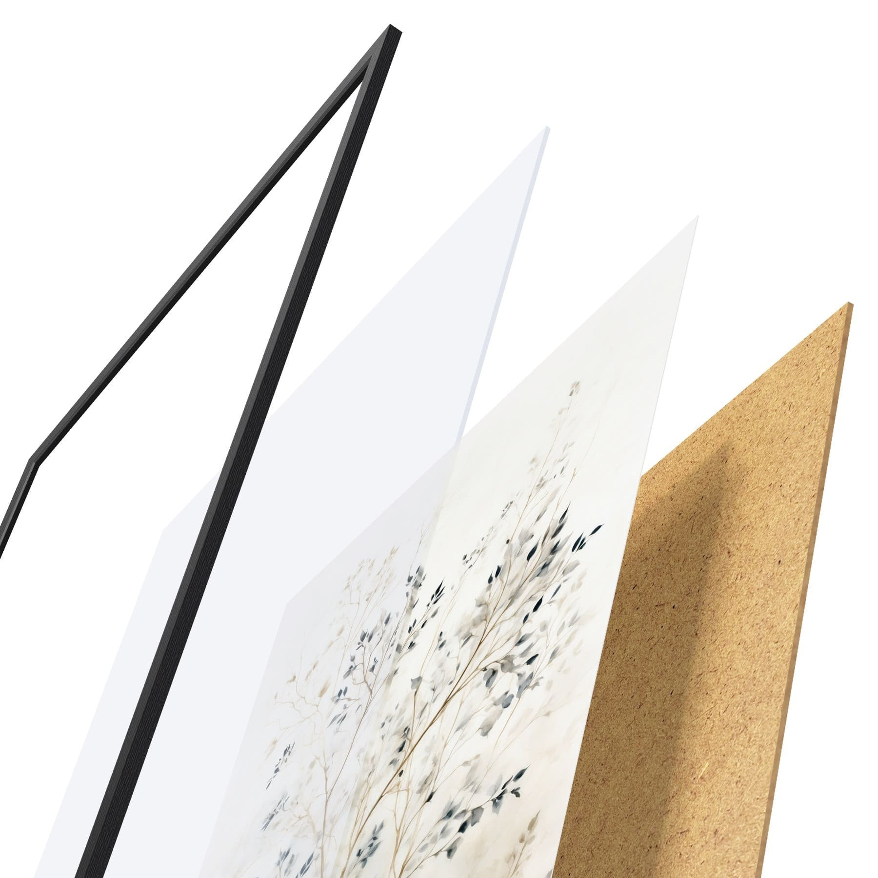 Plagát sa skladá z rámu, plexiskla, vytlačeného obrazu a podkladu z drevotriesky. Plagát možno okamžite zavesiť na stenu vďaka úchytom na zadnej strane.