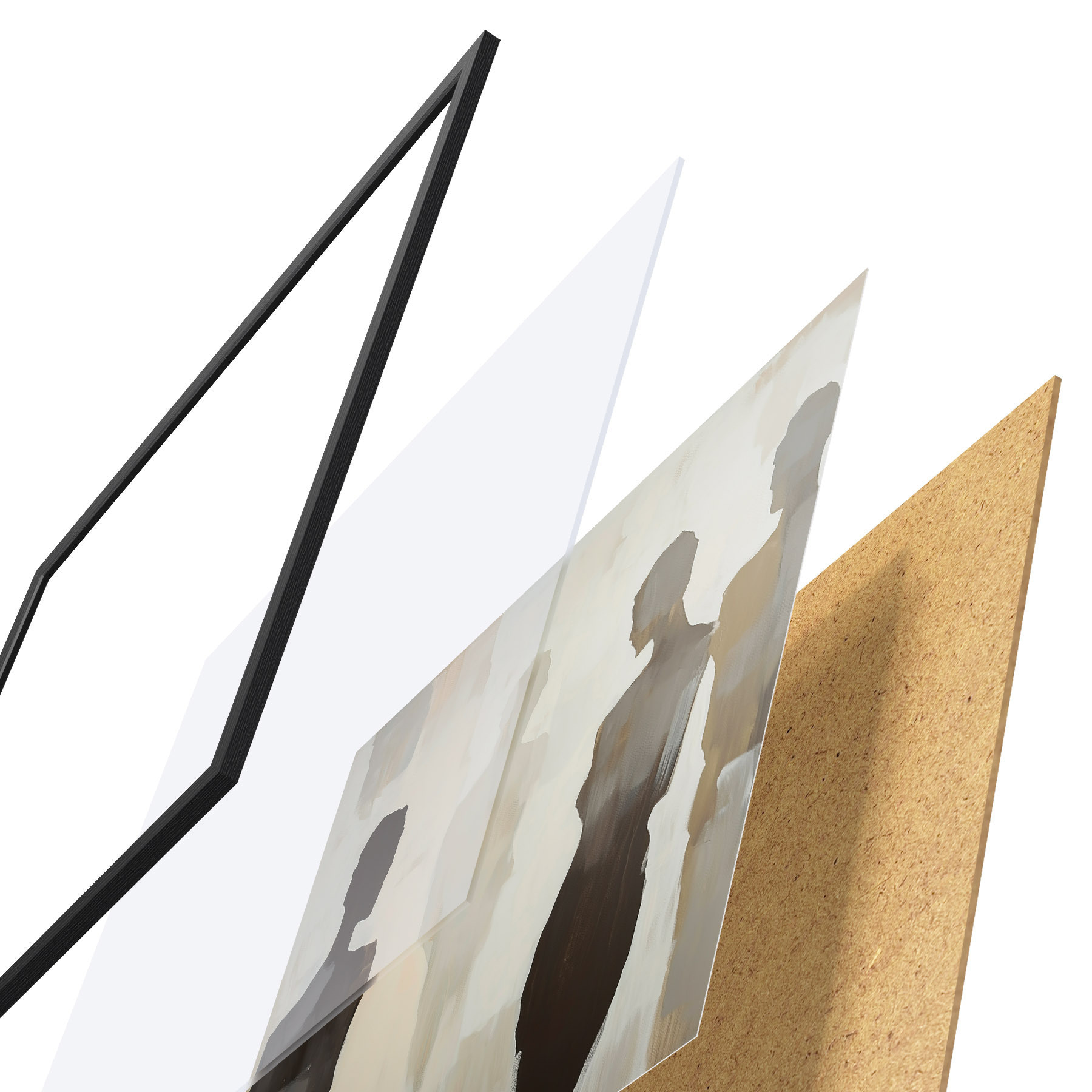 Plagát sa skladá z rámu, plexiskla, vytlačeného obrazu a podkladu z drevotriesky. Plagát možno okamžite zavesiť na stenu vďaka úchytom na zadnej strane.