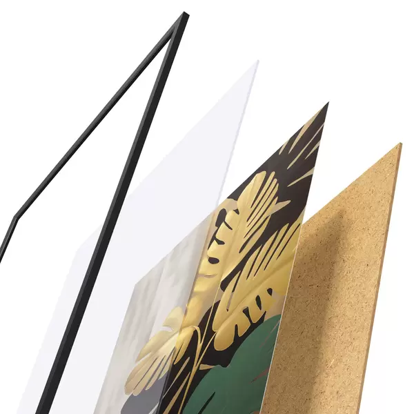 Plagát sa skladá z rámu, plexiskla, vytlačeného obrazu a podkladu z drevotriesky. Plagát možno okamžite zavesiť na stenu vďaka úchytom na zadnej strane.