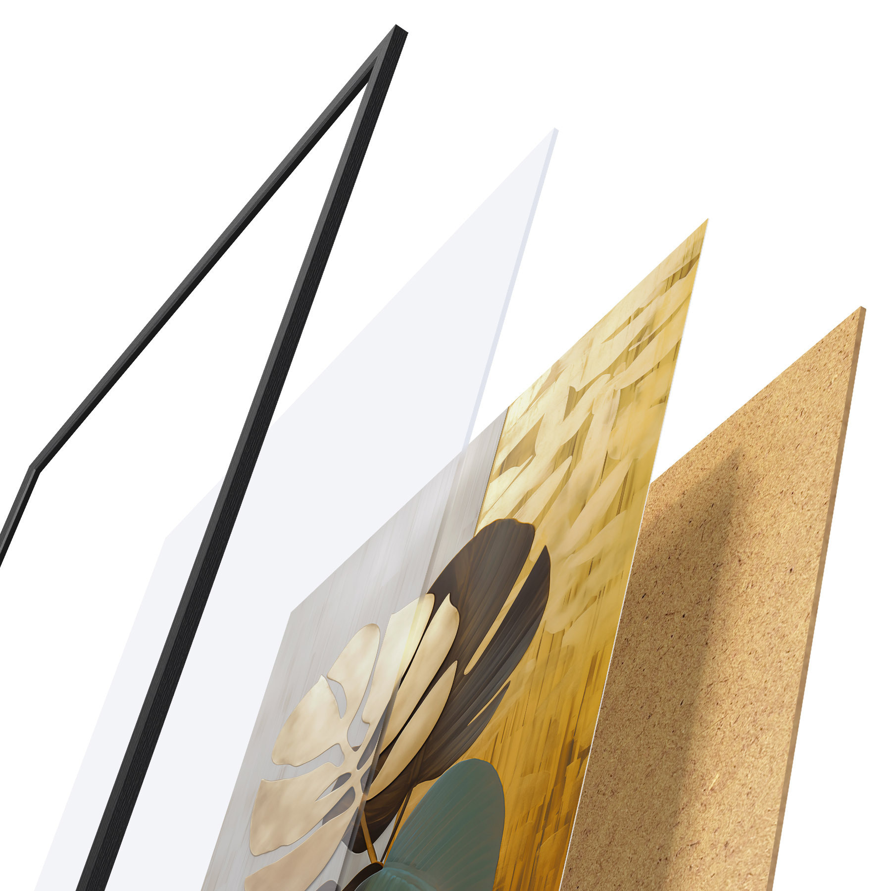 Plagát sa skladá z rámu, plexiskla, vytlačeného obrazu a podkladu z drevotriesky. Plagát možno okamžite zavesiť na stenu vďaka úchytom na zadnej strane.