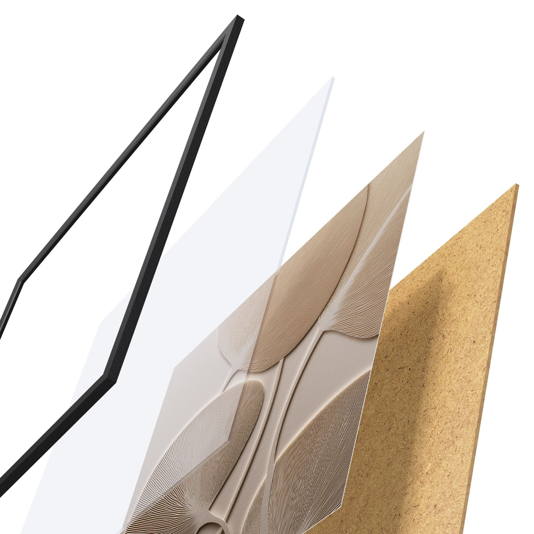 Plagát sa skladá z rámu, plexiskla, vytlačeného obrazu a podkladu z drevotriesky. Plagát možno okamžite zavesiť na stenu vďaka úchytom na zadnej strane.