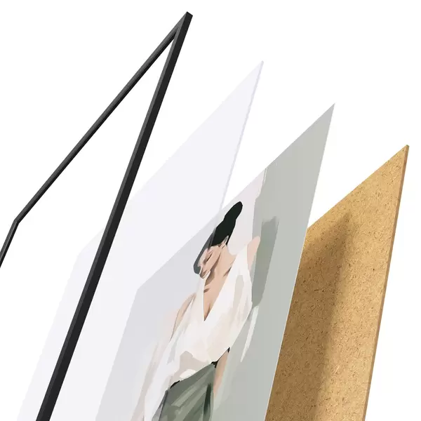 Plagát sa skladá z rámu, plexiskla, vytlačeného obrazu a podkladu z drevotriesky. Plagát možno okamžite zavesiť na stenu vďaka úchytom na zadnej strane.