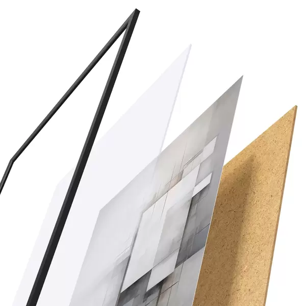 Plagát sa skladá z rámu, plexiskla, vytlačeného obrazu a podkladu z drevotriesky. Plagát možno okamžite zavesiť na stenu vďaka úchytom na zadnej strane.