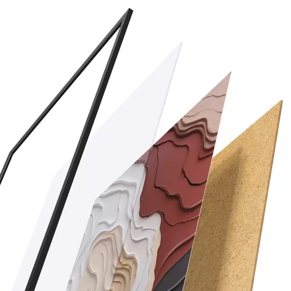 Plagát sa skladá z rámu, plexiskla, vytlačeného obrazu a podkladu z drevotriesky. Plagát možno okamžite zavesiť na stenu vďaka úchytom na zadnej strane.