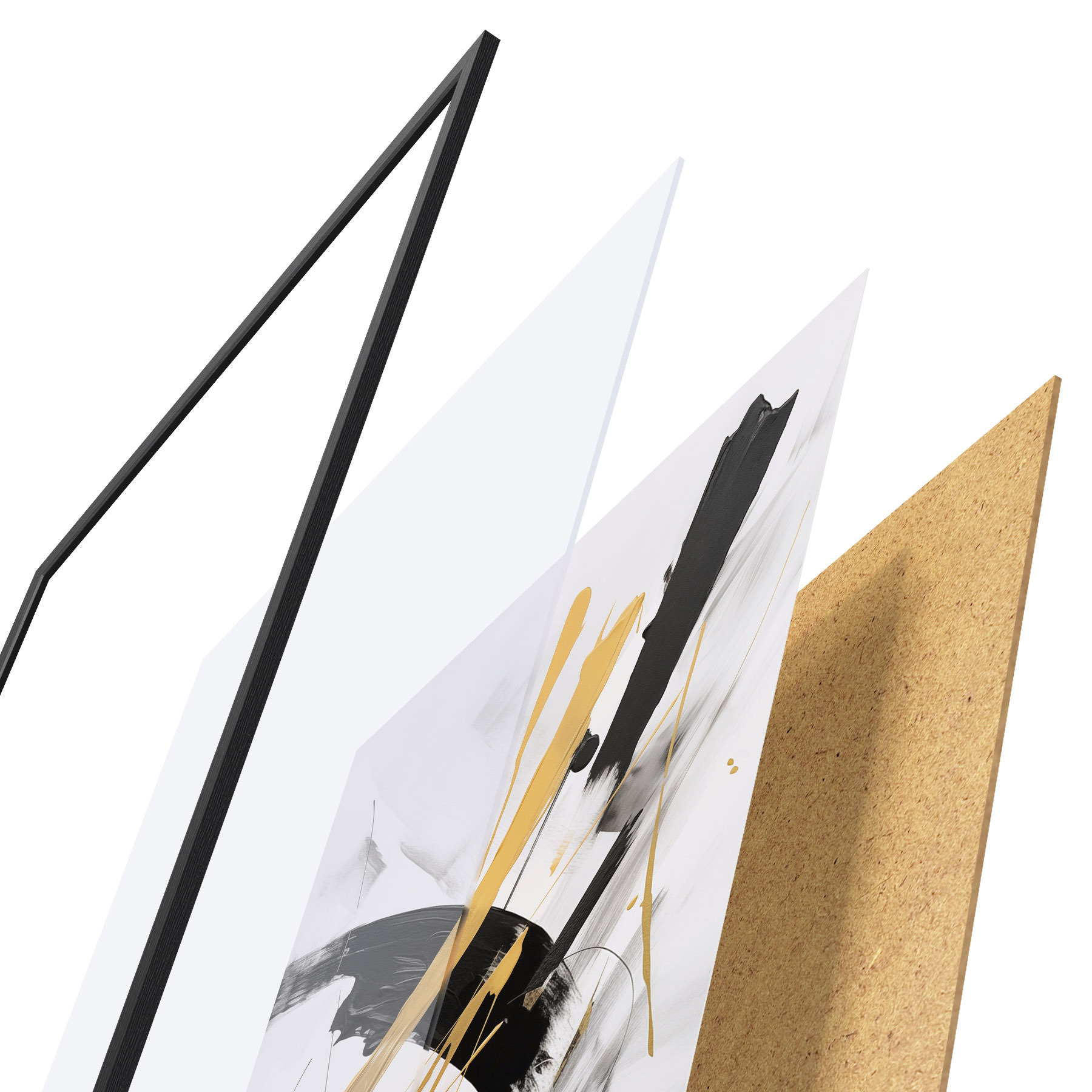 Plagát sa skladá z rámu, plexiskla, vytlačeného obrazu a podkladu z drevotriesky. Plagát možno okamžite zavesiť na stenu vďaka úchytom na zadnej strane.