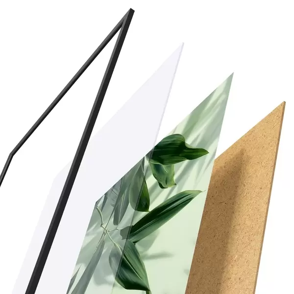 Plagát sa skladá z rámu, plexiskla, vytlačeného obrazu a podkladu z drevotriesky. Plagát možno okamžite zavesiť na stenu vďaka úchytom na zadnej strane.