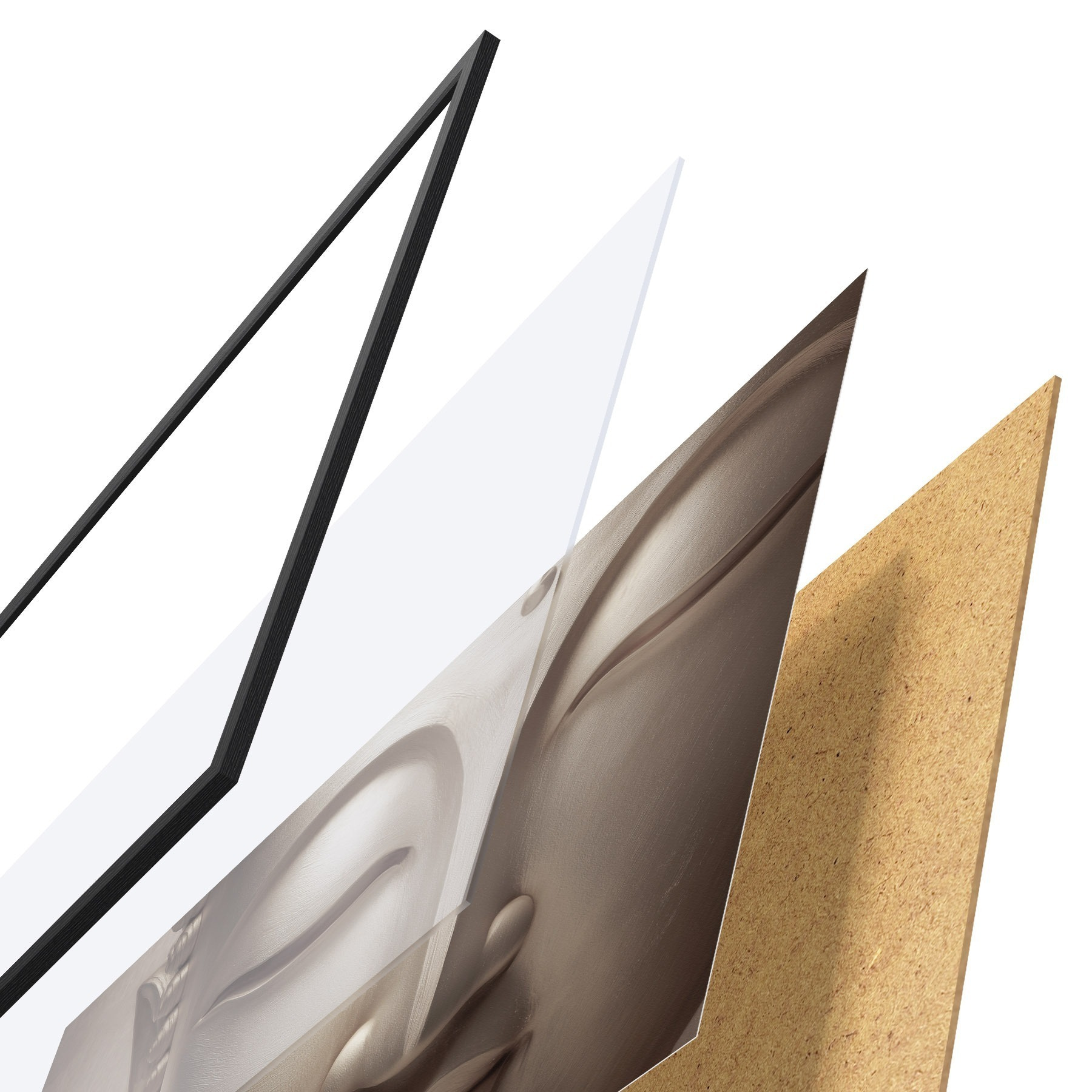Plagát sa skladá z rámu, plexiskla, vytlačeného obrazu a podkladu z drevotriesky. Plagát možno okamžite zavesiť na stenu vďaka úchytom na zadnej strane.