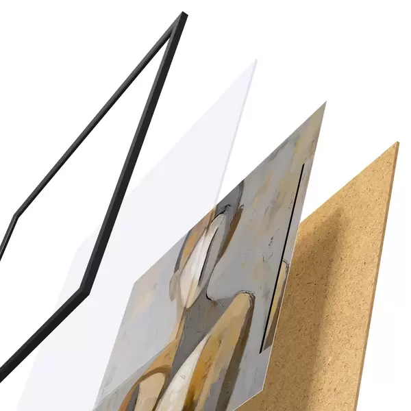 Plagát sa skladá z rámu, plexiskla, vytlačeného obrazu a podkladu z drevotriesky. Plagát možno okamžite zavesiť na stenu vďaka úchytom na zadnej strane.