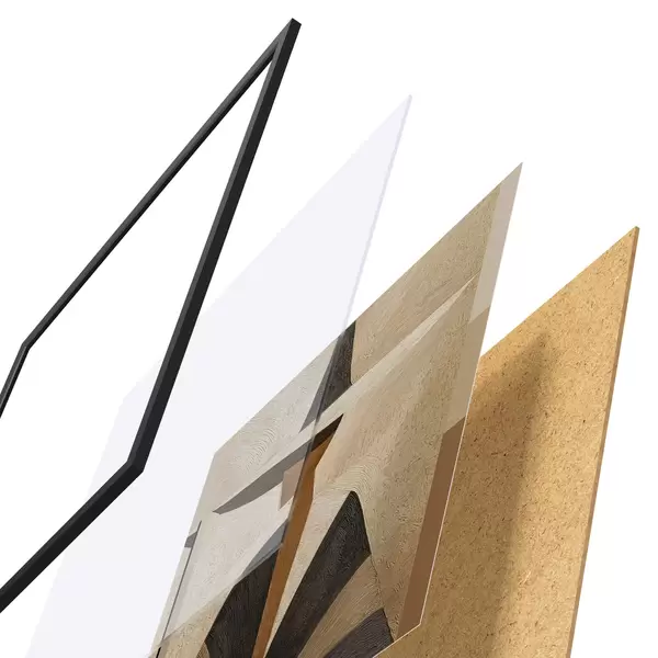 Plagát sa skladá z rámu, plexiskla, vytlačeného obrazu a podkladu z drevotriesky. Plagát možno okamžite zavesiť na stenu vďaka úchytom na zadnej strane.