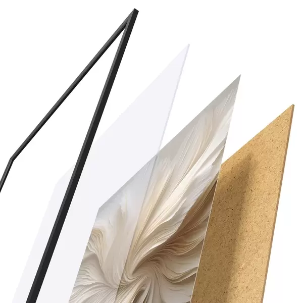 Plagát sa skladá z rámu, plexiskla, vytlačeného obrazu a podkladu z drevotriesky. Plagát možno okamžite zavesiť na stenu vďaka úchytom na zadnej strane.