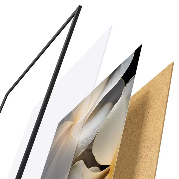 Plagát sa skladá z rámu, plexiskla, vytlačeného obrazu a podkladu z drevotriesky. Plagát možno okamžite zavesiť na stenu vďaka úchytom na zadnej strane.