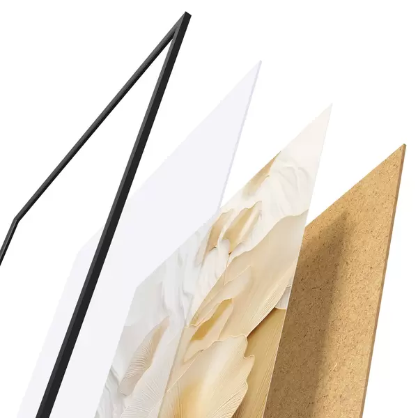 Plagát sa skladá z rámu, plexiskla, vytlačeného obrazu a podkladu z drevotriesky. Plagát možno okamžite zavesiť na stenu vďaka úchytom na zadnej strane.