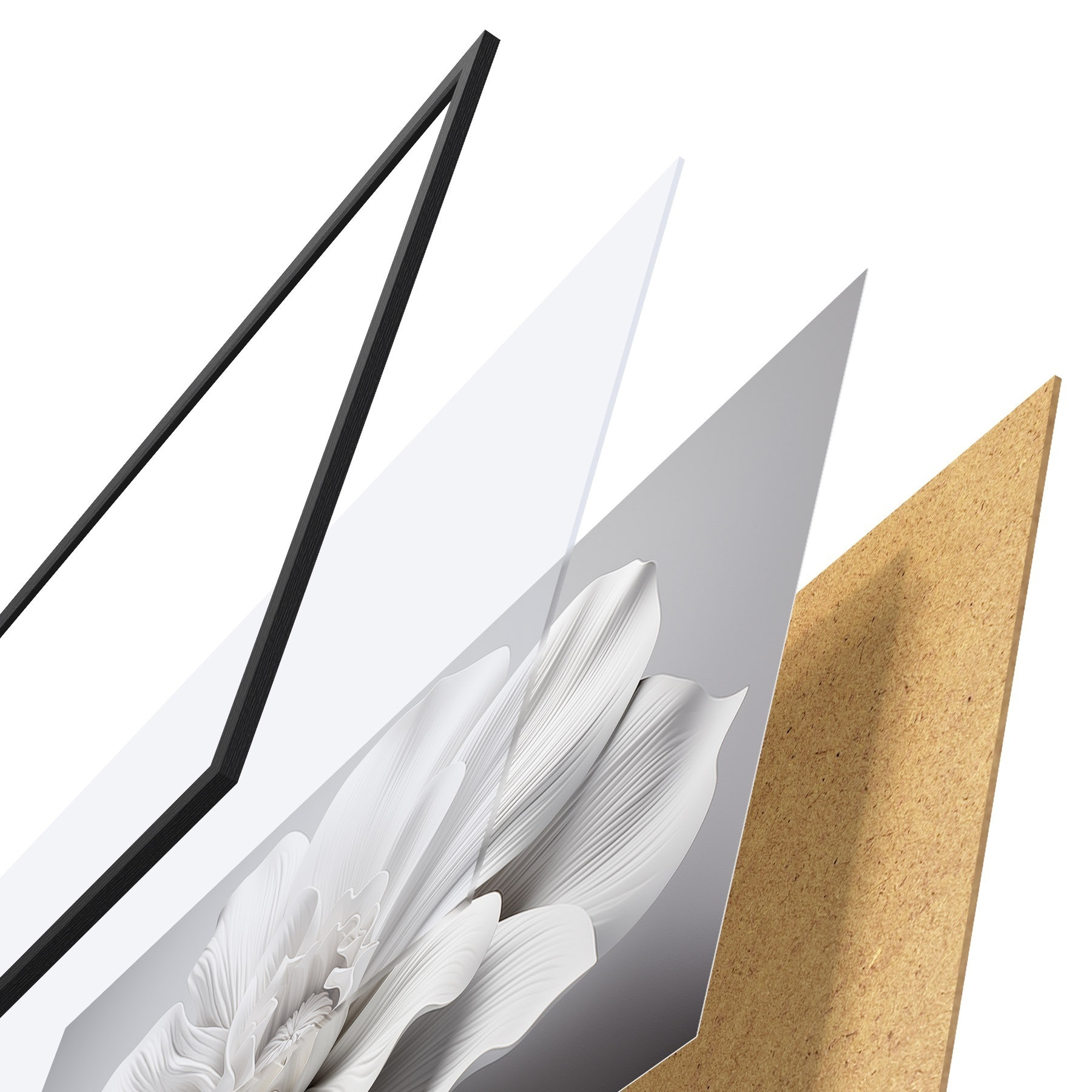 Plagát sa skladá z rámu, plexiskla, vytlačeného obrazu a podkladu z drevotriesky. Plagát možno okamžite zavesiť na stenu vďaka úchytom na zadnej strane.