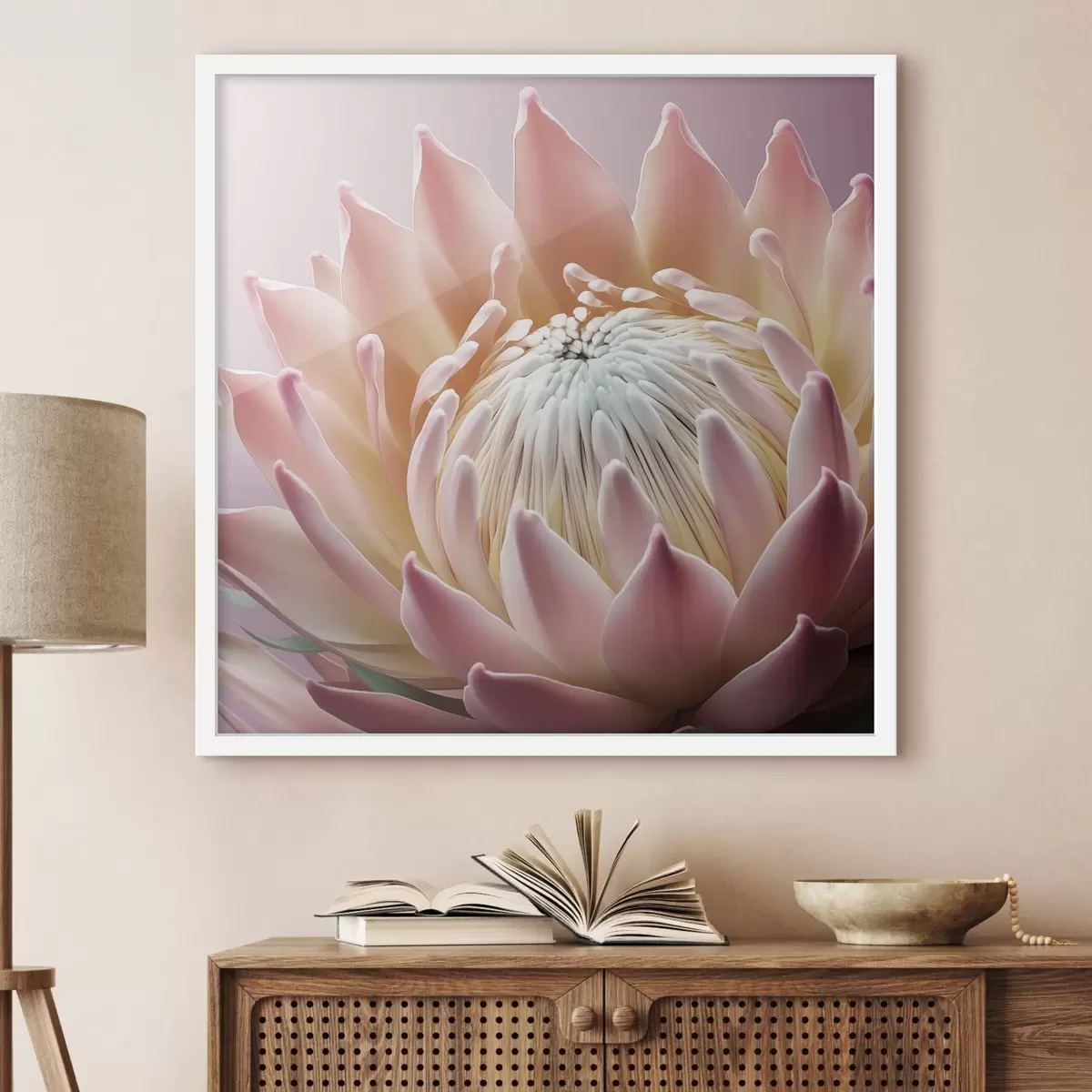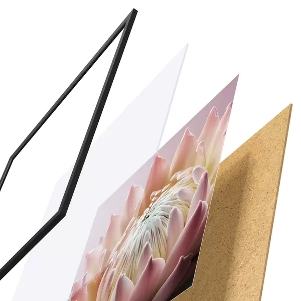 Plagát sa skladá z rámu, plexiskla, vytlačeného obrazu a podkladu z drevotriesky. Plagát možno okamžite zavesiť na stenu vďaka úchytom na zadnej strane.