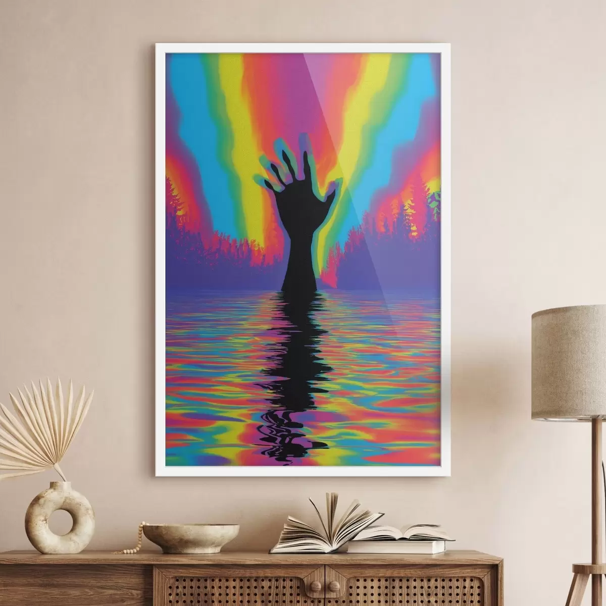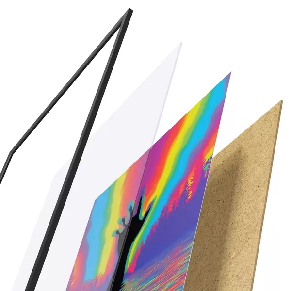 Plagát sa skladá z rámu, plexiskla, vytlačeného obrazu a podkladu z drevotriesky. Plagát možno okamžite zavesiť na stenu vďaka úchytom na zadnej strane.
