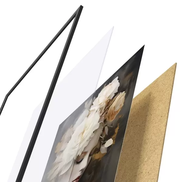 Plagát sa skladá z rámu, plexiskla, vytlačeného obrazu a podkladu z drevotriesky. Plagát možno okamžite zavesiť na stenu vďaka úchytom na zadnej strane.