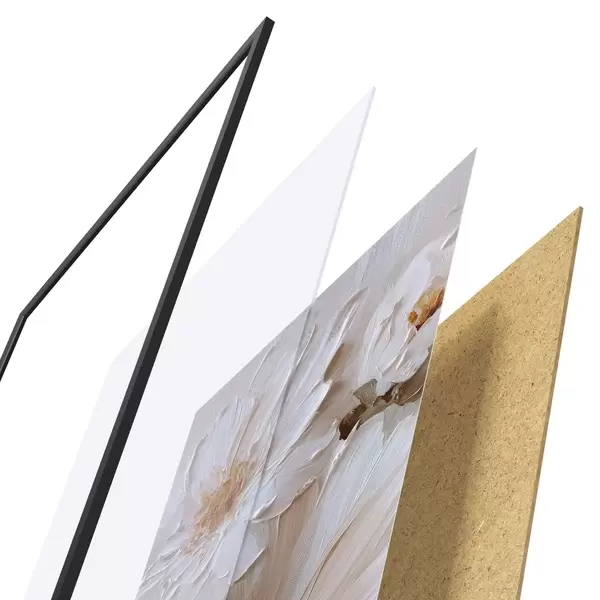 Plagát sa skladá z rámu, plexiskla, vytlačeného obrazu a podkladu z drevotriesky. Plagát možno okamžite zavesiť na stenu vďaka úchytom na zadnej strane.