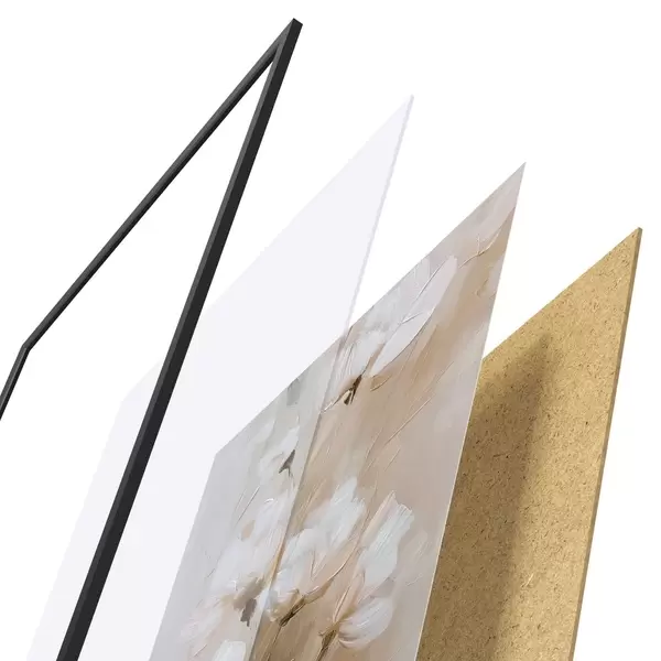 Plagát sa skladá z rámu, plexiskla, vytlačeného obrazu a podkladu z drevotriesky. Plagát možno okamžite zavesiť na stenu vďaka úchytom na zadnej strane.
