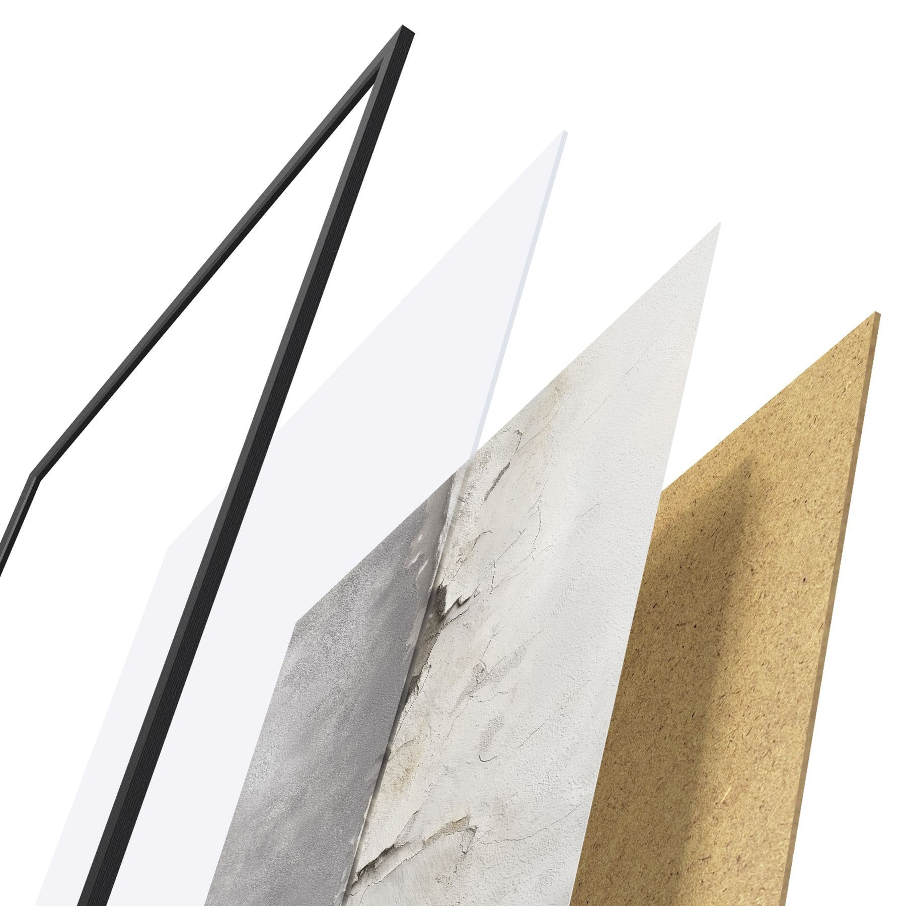 Plagát sa skladá z rámu, plexiskla, vytlačeného obrazu a podkladu z drevotriesky. Plagát možno okamžite zavesiť na stenu vďaka úchytom na zadnej strane.