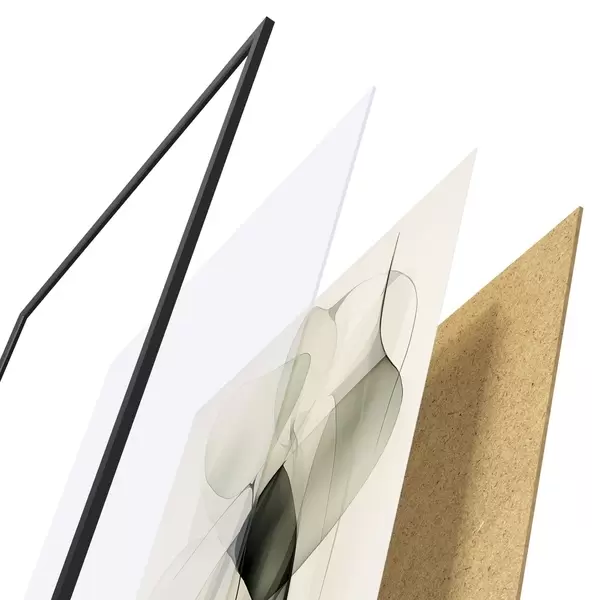 Plagát sa skladá z rámu, plexiskla, vytlačeného obrazu a podkladu z drevotriesky. Plagát možno okamžite zavesiť na stenu vďaka úchytom na zadnej strane.