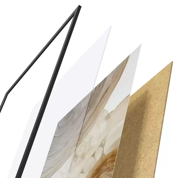 Plagát sa skladá z rámu, plexiskla, vytlačeného obrazu a podkladu z drevotriesky. Plagát možno okamžite zavesiť na stenu vďaka úchytom na zadnej strane.