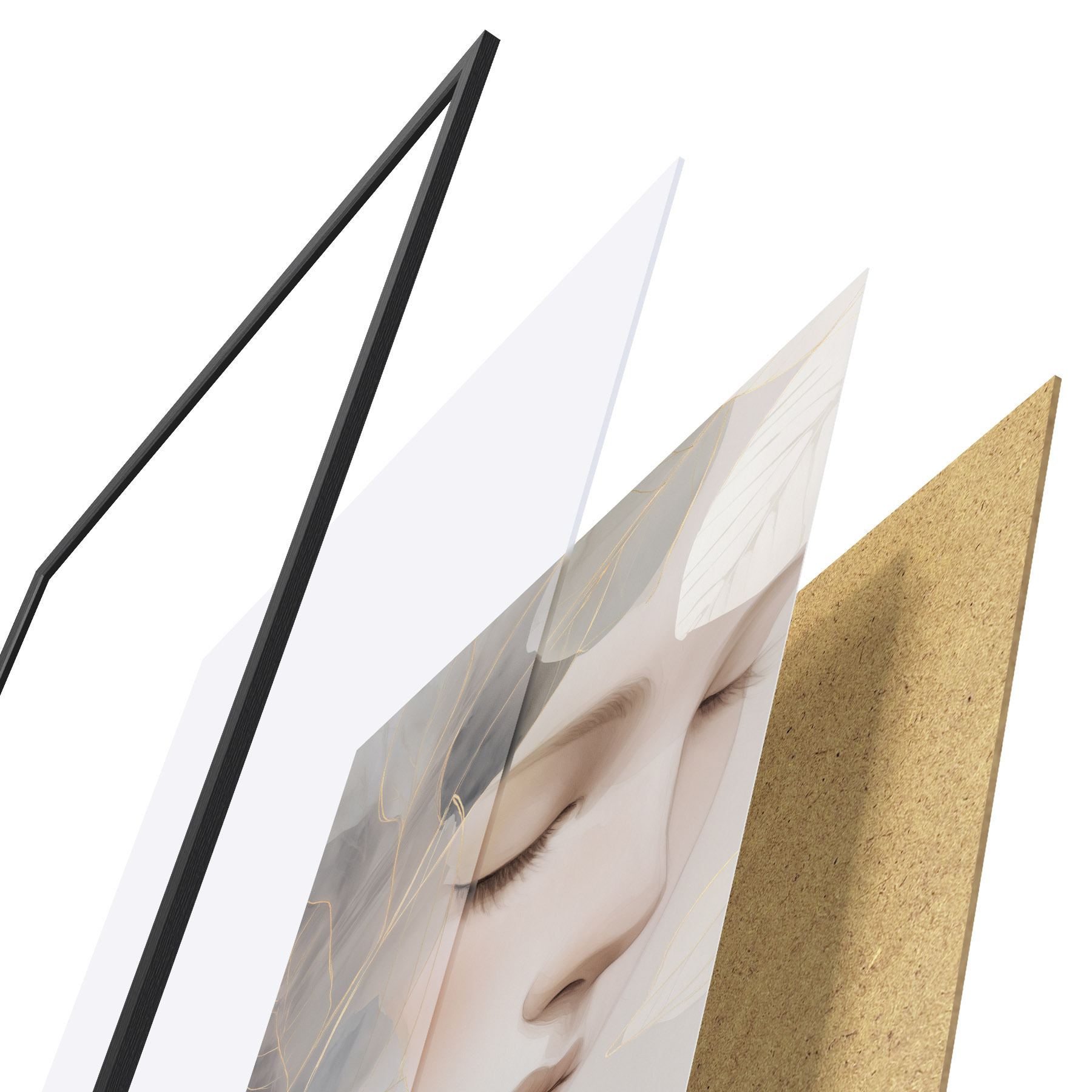 Plagát sa skladá z rámu, plexiskla, vytlačeného obrazu a podkladu z drevotriesky. Plagát možno okamžite zavesiť na stenu vďaka úchytom na zadnej strane.
